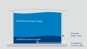 استفاده همزمان از مخزن به عنوان مخزن نگهداری آب شرب و مخزن ذخیره آب آتشنشانی نیز ممکن است. معمولاً در کمپ های پایانه های گازی و نفتی که مخزن سه لایه آکواتکس علاوه بر تأمین آب مورد نیاز شرب و مصرفی باید بتواند در شرایط اضطراری به اطفاء حریق نیز کمک کند، مخزن آب آکواتکس با تغییری در لوله های خروجی به صورت دوگانه طراحی و استفاده می گردد.